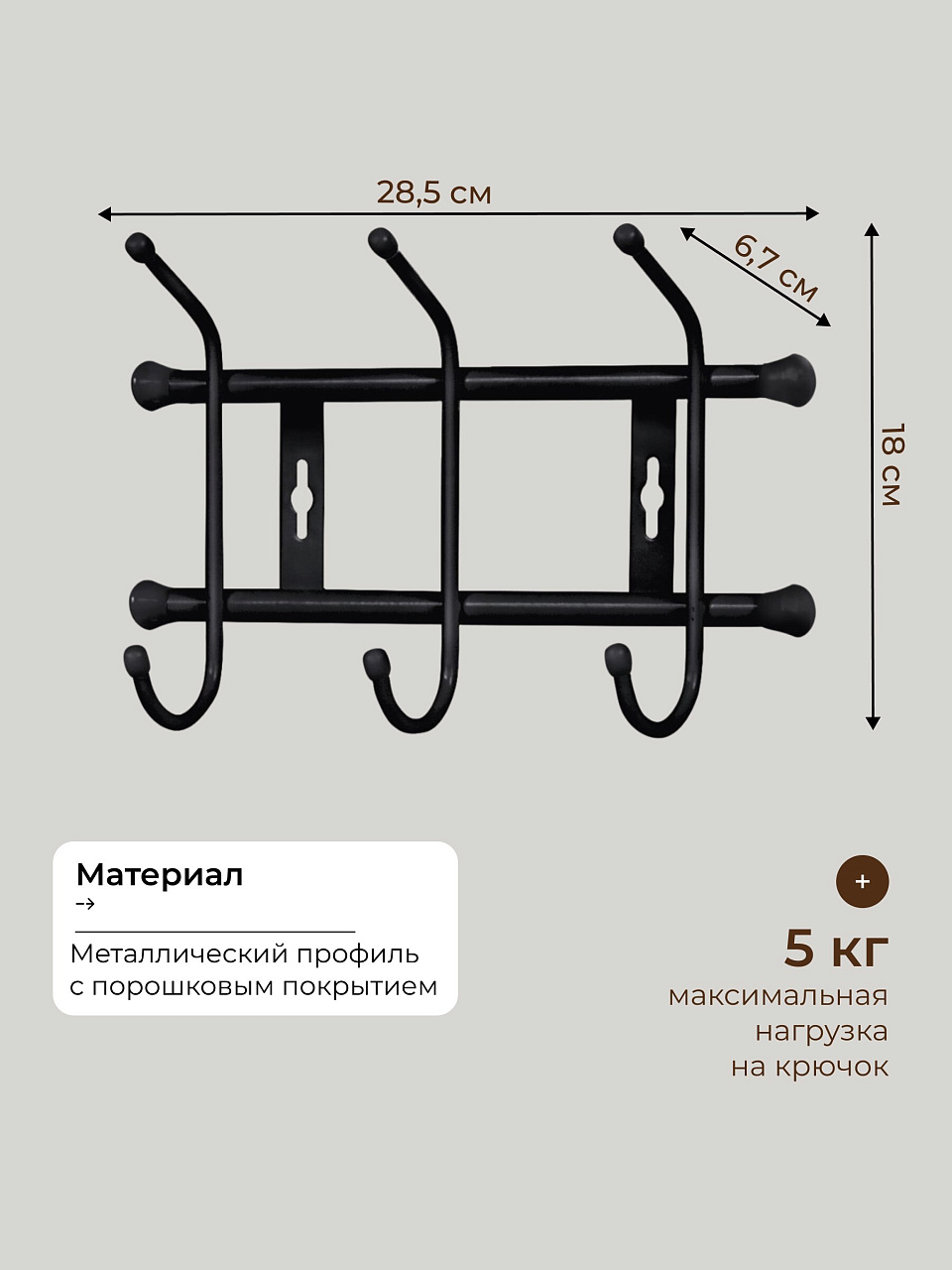 Вы можете приобрести «Вешалка настенная 3 крючка, 6.7х28.5х18 см, металл, Nika, ВН3, черная» и другие товары в нашем интернет-магазине в Ельце по низким ценам и с бесплатным самовывозом.