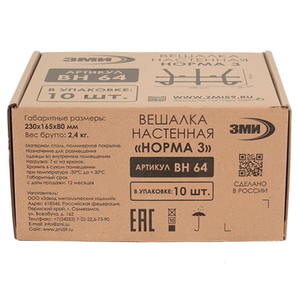 Вы можете приобрести «Вешалка настенная 3 крючка, 16.5х23х8 см, ЗМИ, Норма 3, ВН 64 БС, белое серебро» и другие товары в нашем интернет-магазине в Клинцах по низким ценам и с бесплатным самовывозом.