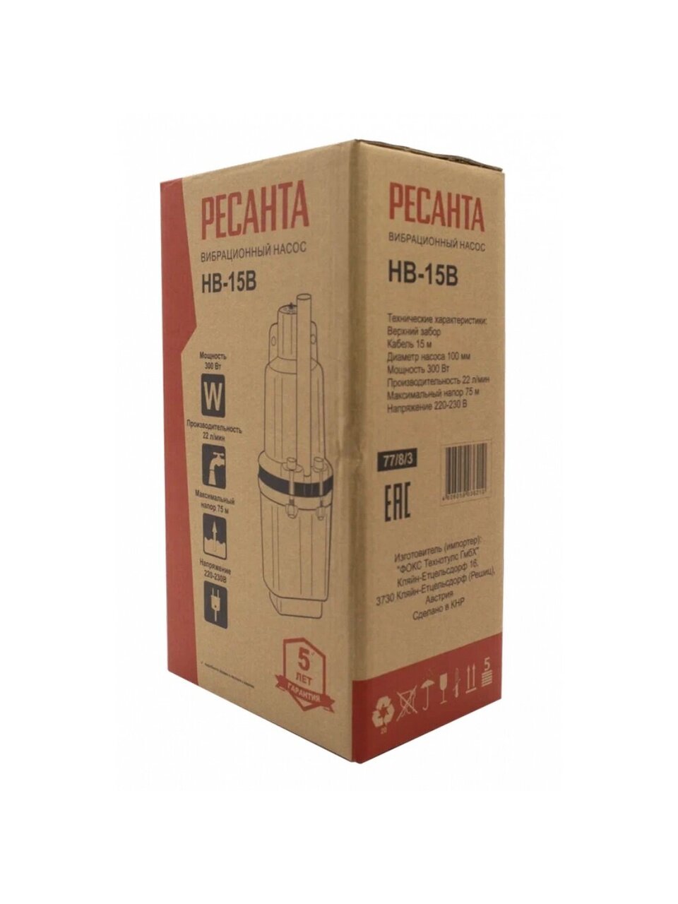 Вы можете приобрести «Насос вибрационный, Ресанта, верхний забор, 15 м, 300 Вт, глубина погружения 3 м, максимальный напор 75 м, 1.32 м³/ч, НВ-15В» и другие товары в нашем интернет-магазине в Армавире по низким ценам и с бесплатным самовывозом.