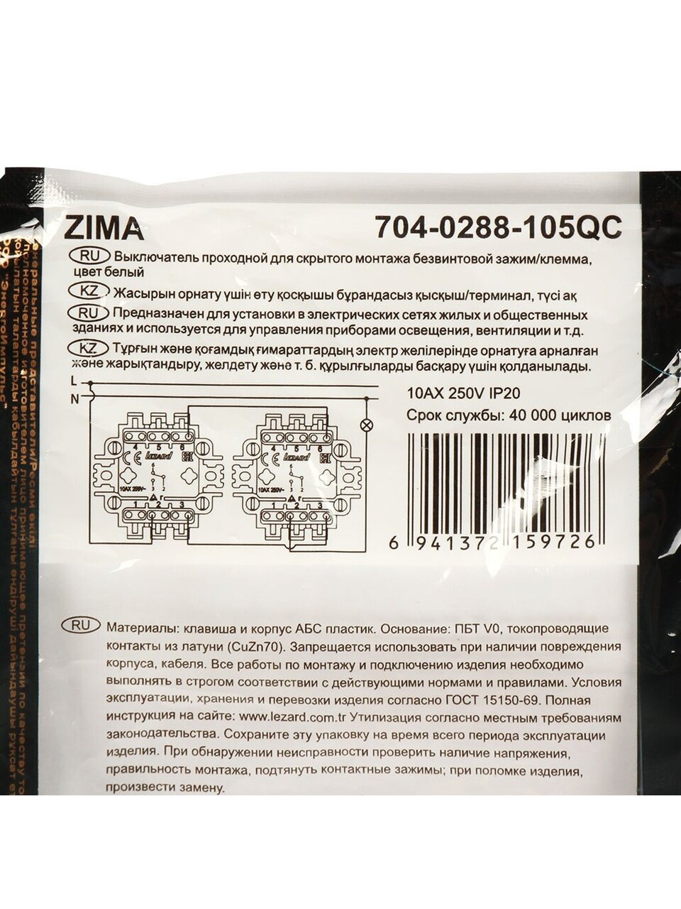 Вы можете приобрести «Выключатель скрытой установки, одноклавишный, без заземления, 10 А, 250 В, пластик, IP20, белый, проходной, безвинтовой, зажим/клемма, Lezard, Zima, 704-0288-105QC» и другие товары в нашем интернет-магазине в Нижнем Новгороде по низким ценам и с бесплатным самовывозом.
