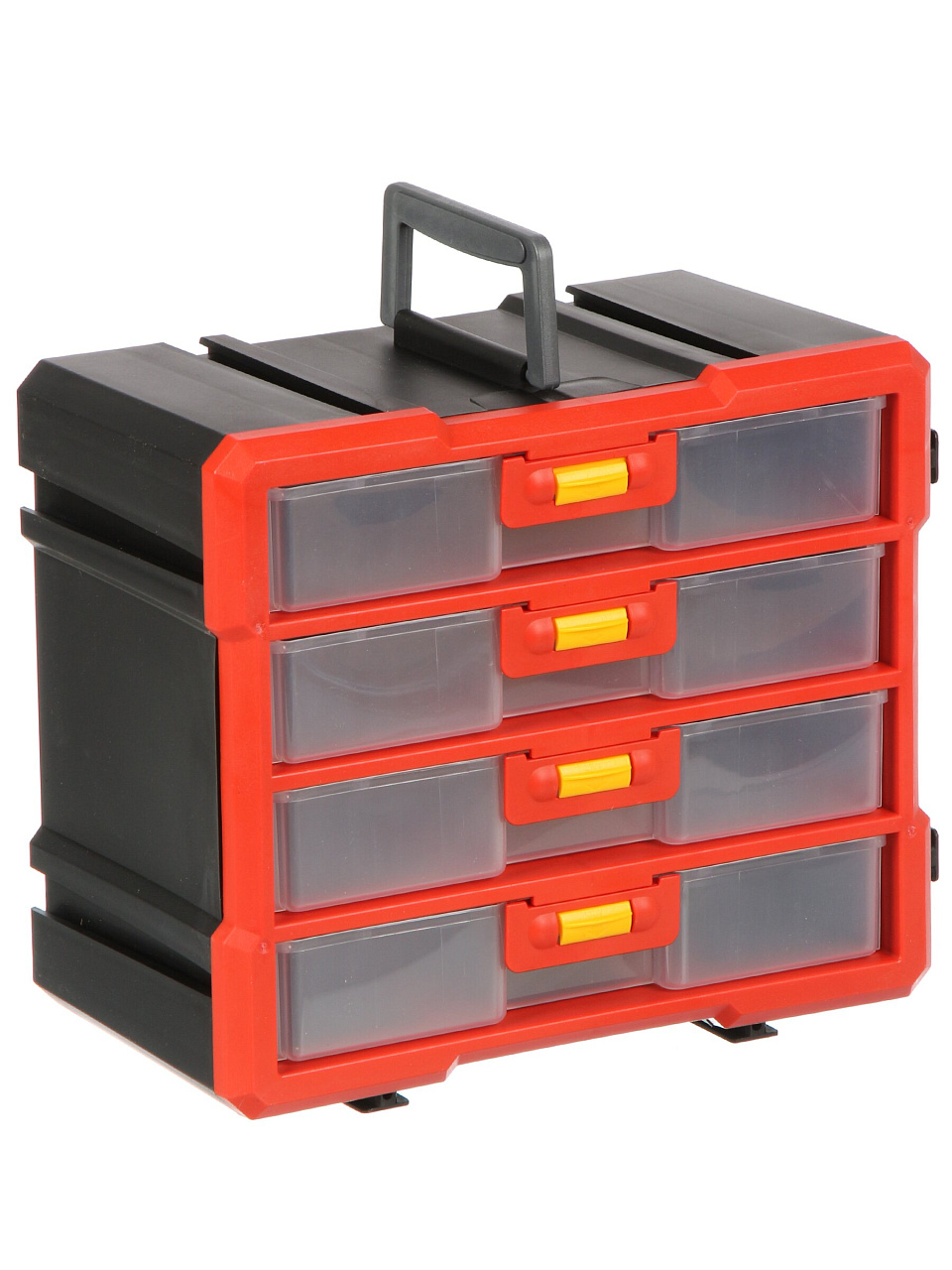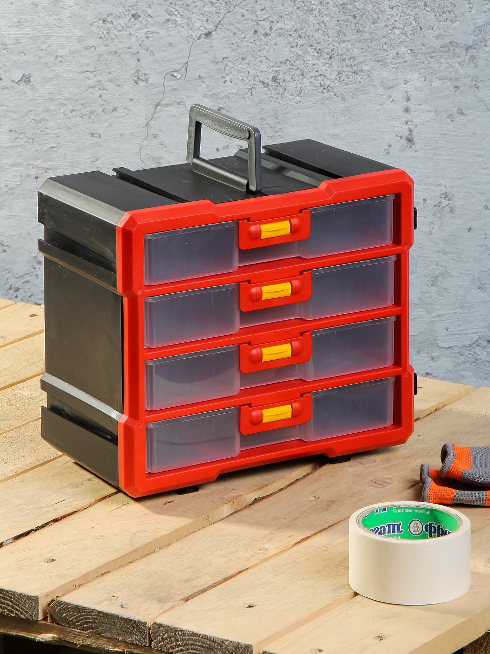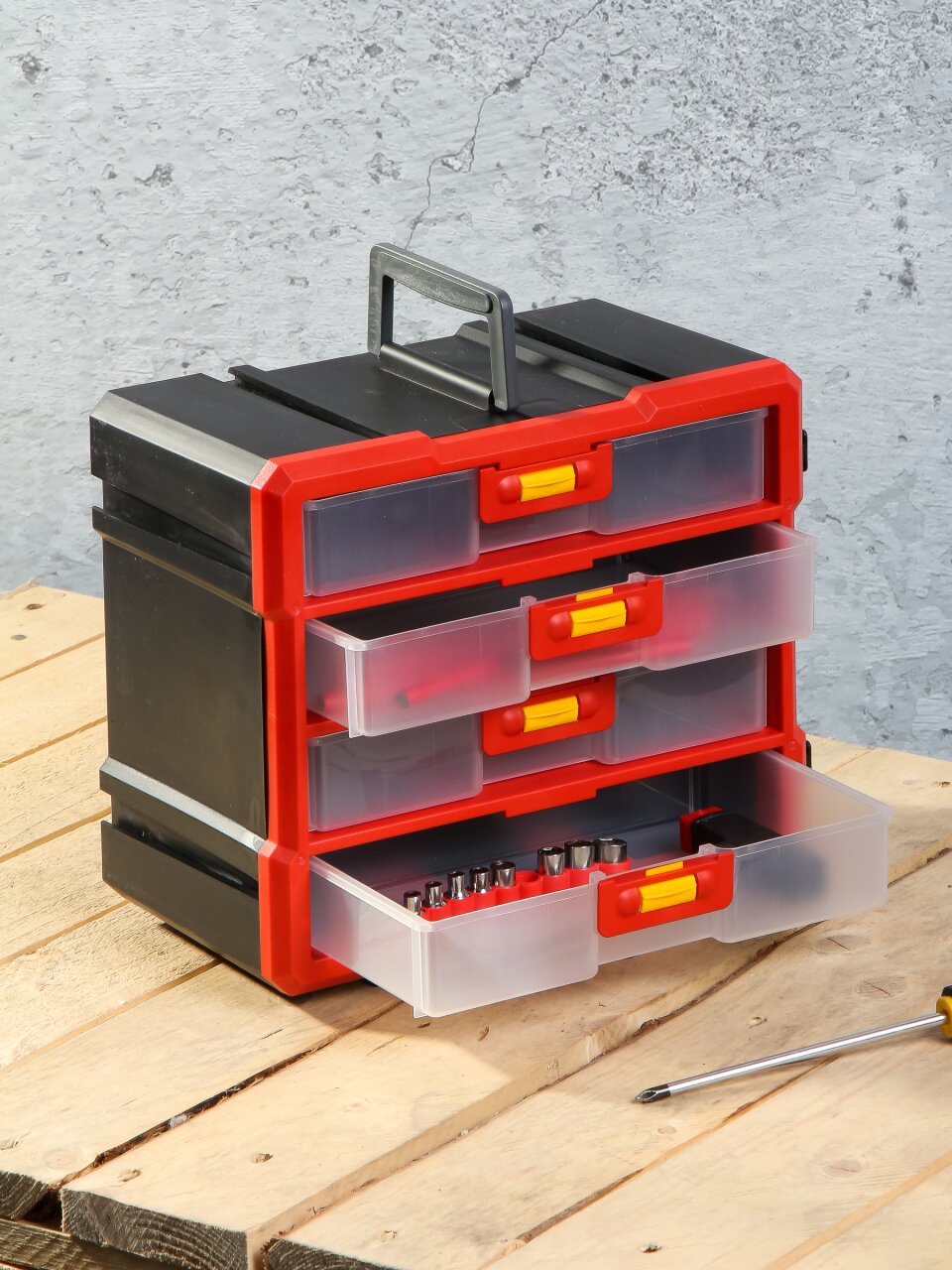 Да, модель подходит для небольших электроинструментов, расходников, а также для хранения крепежа или аксессуаров. 4 лотка позволяют удобно рассортировать содержимое.