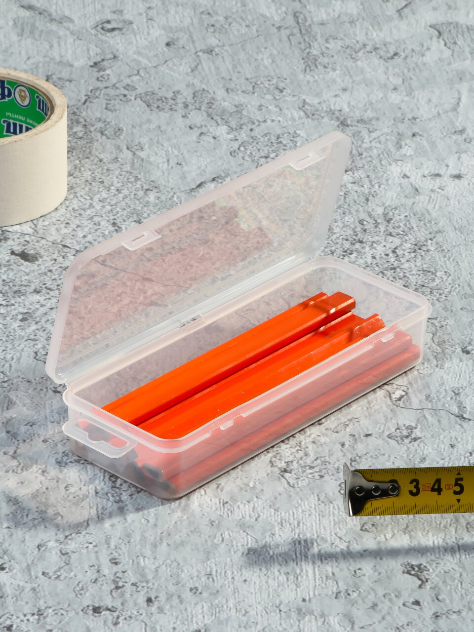 Внутри один отсек. Корпус выполнен из прозрачного пластика, что обеспечивает лёгкий визуальный контроль содержимого и долговечность.
