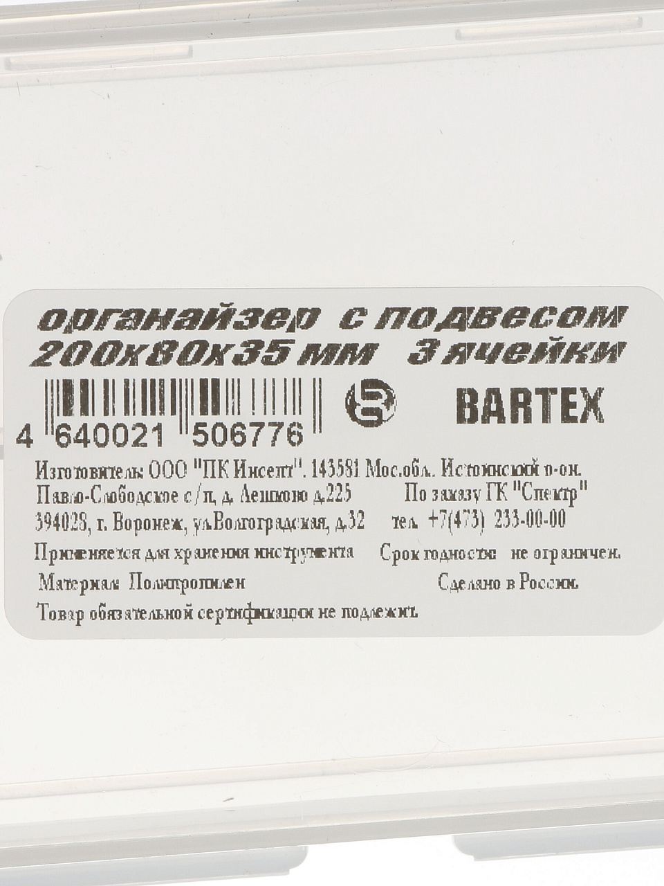 Компактный ящик-органайзер Bartex (3 ячейки, 20х8х3.5 см): аккуратное хранение инструмента без лишнего места и затрат. Идеальное решение для дома, дачи, гаража или подарка.
