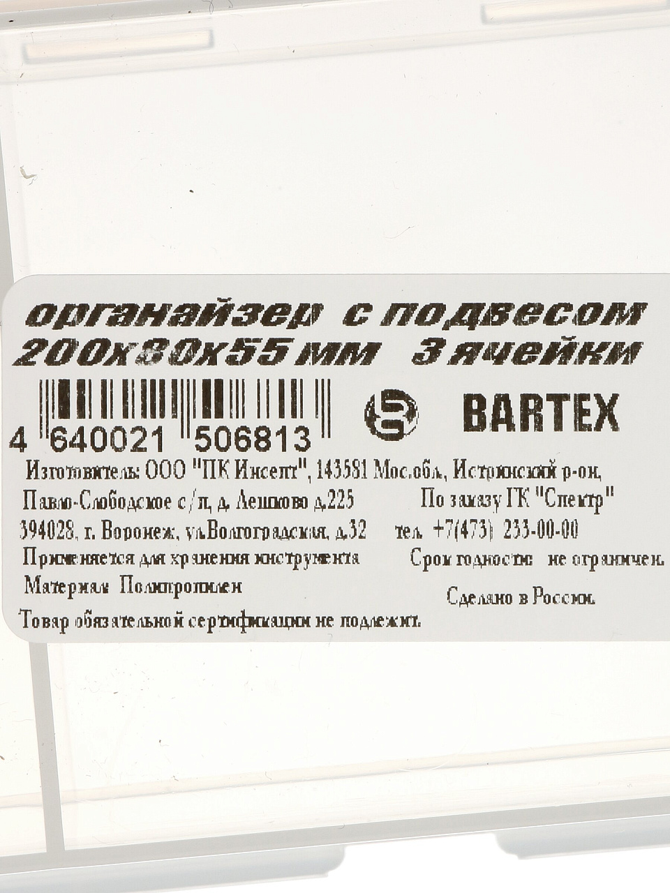 Ящик-органайзер Bartex 3 ячейки 20х8х5.5 см — компактное решение для хранения инструмента дома и на даче без лишних затрат и беспорядка.