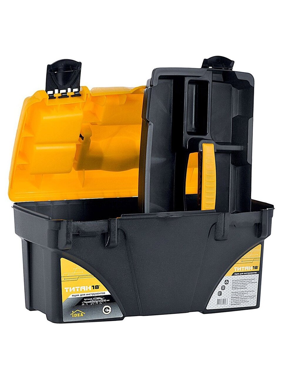 При производстве изделий Idea используются исключительно высококачественные полимеры. Именно поэтому ящик для инструментов Титан М 2936 отличается исключительной долговечностью и прочностью. Популярность этой модели обеспечивают невысокая стоимость, оригинальный дизайн и отличная функциональность.