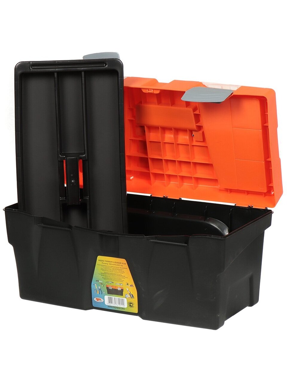 Универсальный ящик оснащен несколькими отсеками для хранения инструмента и различных мелочей, которые необходимы мастеру для выполнения ремонтно-монтажных работ. Бокс имеет удобную форму, очень удобен в эксплуатации, хранении и при транспортировке.