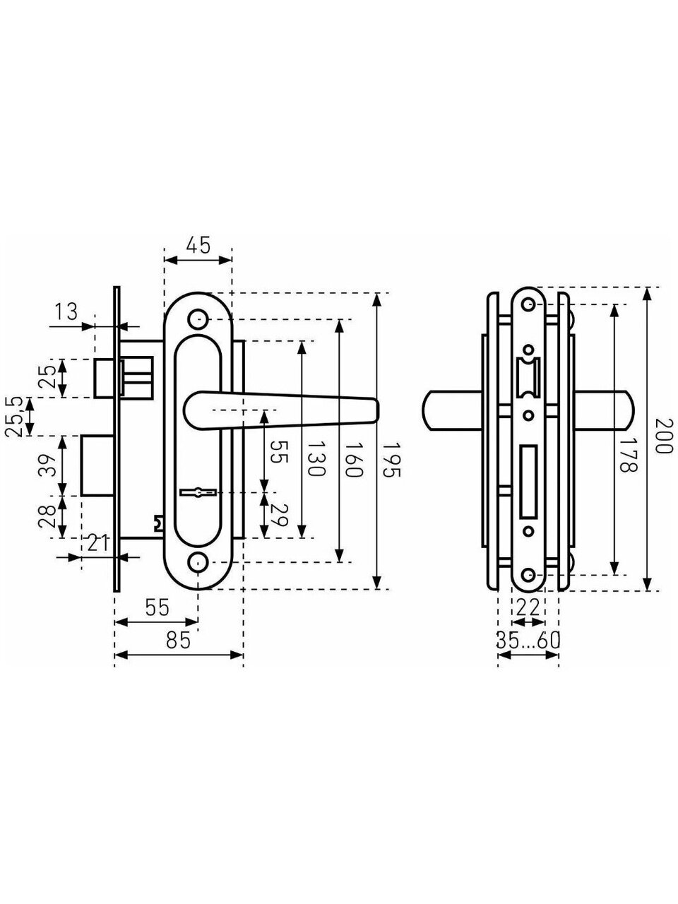 - Тип замка: врезной.