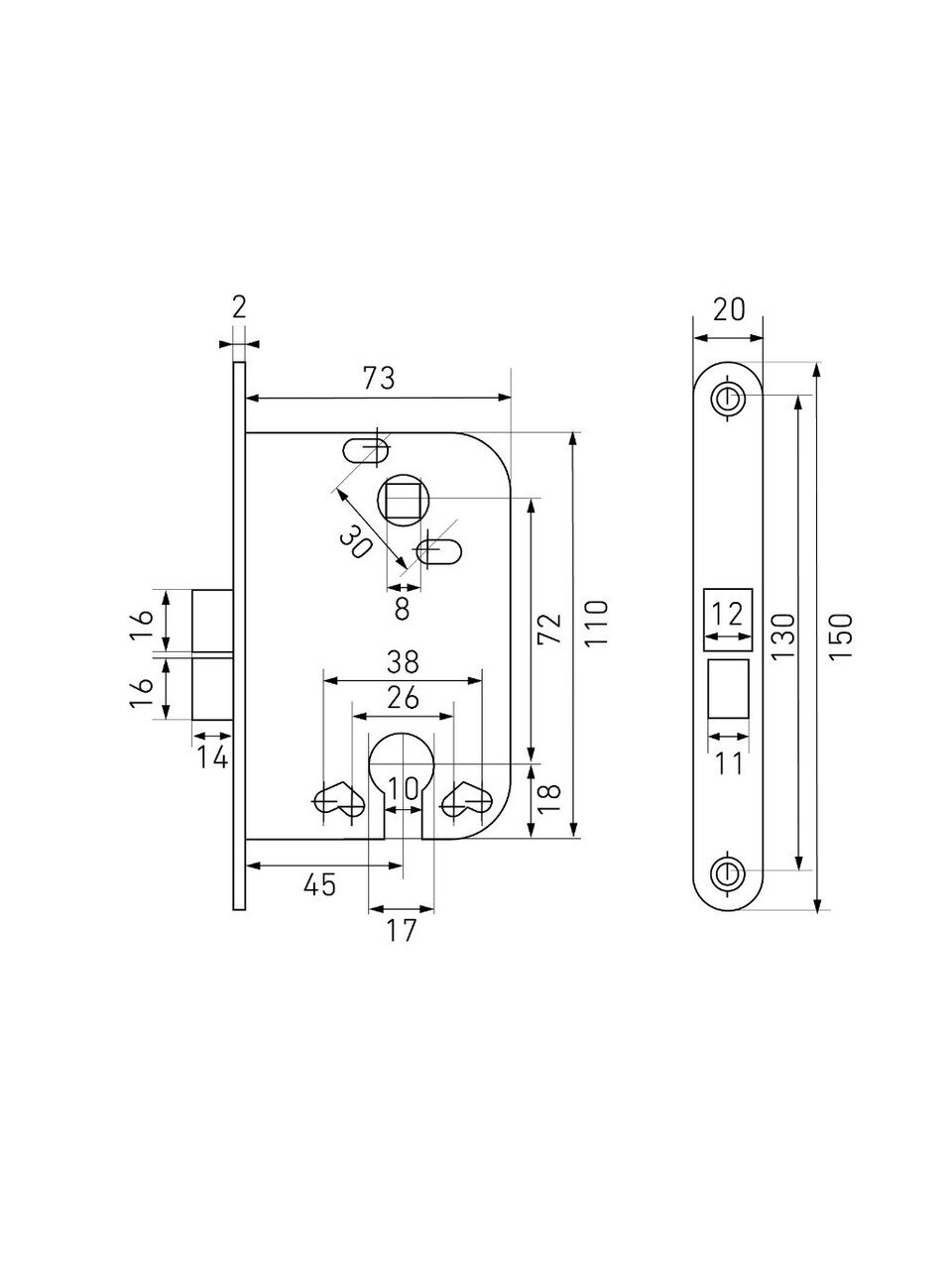 - Размер ригеля: 11х16 мм.