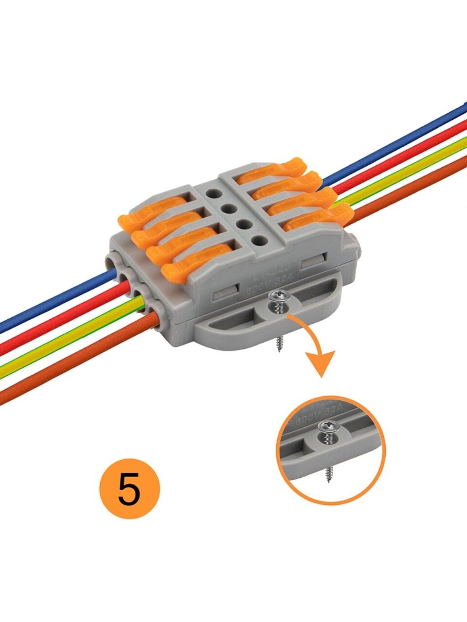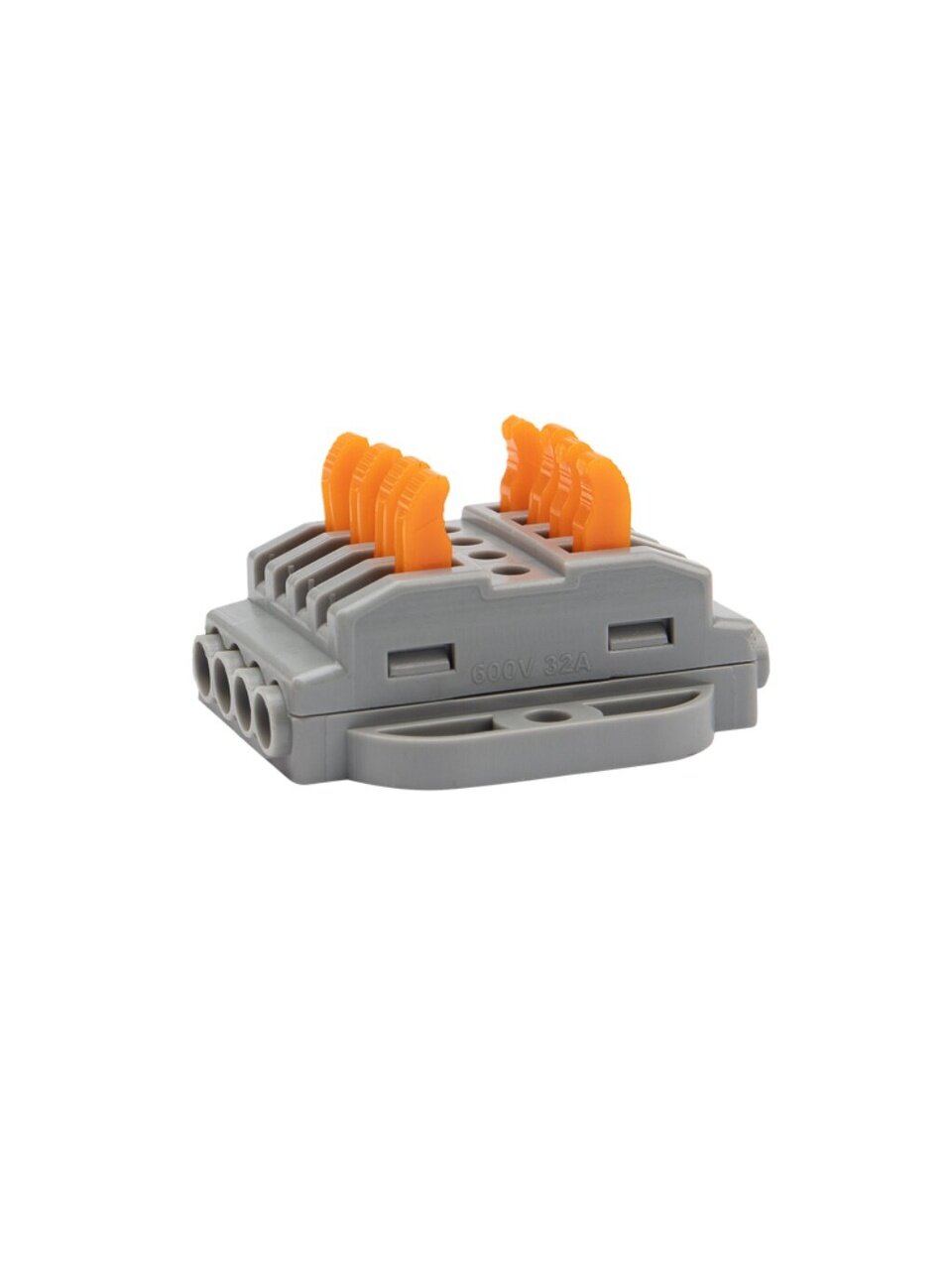 Многоразовые четырехпроводные клеммы Rexant с монтажной площадкой предназначены для соединения медных одножильных и многожильных зачищенных проводников тонкого сечения. Контакт осуществляется путем зажима проводника пластиной. Конструкция предотвращает случайное размыкание контакта. Специальное технологическое отверстие на корпусе клеммы предназначено для проверки соединения тестером-пробником или щупом мультиметра. Корпус из пластика делает контакт изолированным.