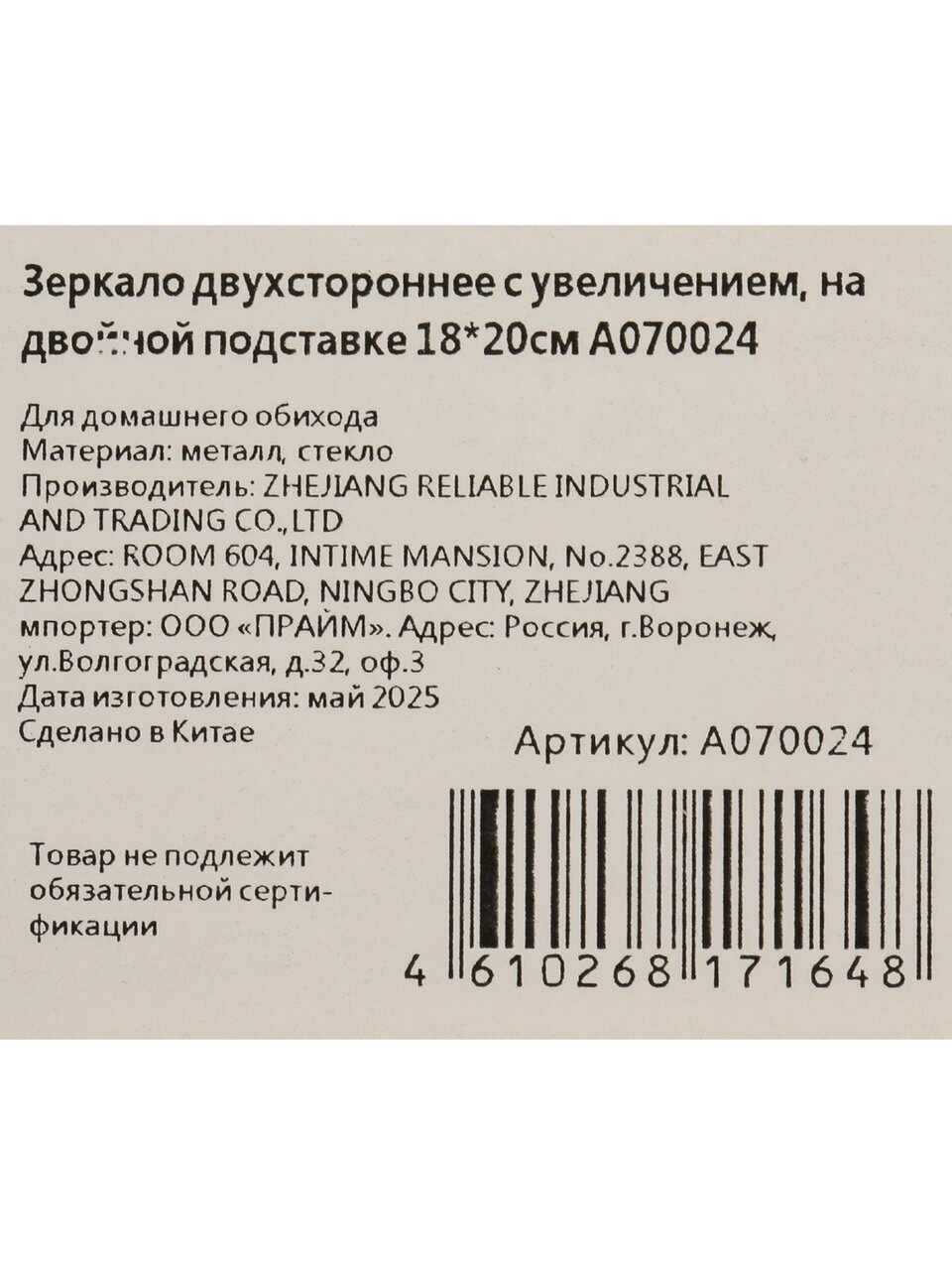 Зеркало настольное 18х20 см с увеличением на двойной подставке: идеальный выбор для макияжа, ухода за кожей и стильного интерьера по выгодной цене.