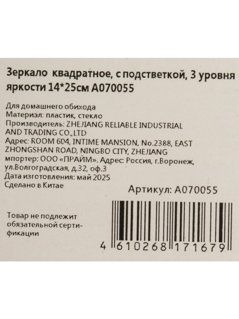 Вы можете приобрести «Зеркало настольное, 14х25 см, квадратное, с подсветкой, 3 уровня яркости, A070055» и другие товары в нашем интернет-магазине в Брянске по низким ценам и с бесплатным самовывозом.