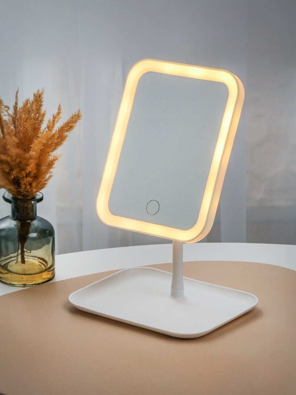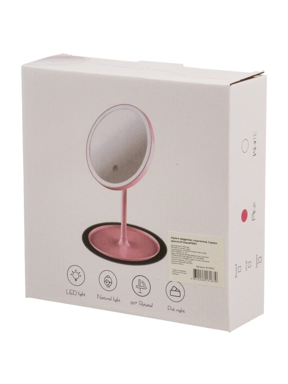 Настольное зеркало 14х25 см с LED-подсветкой: стильный дизайн, 3 уровня яркости для идеального макияжа и ухода за кожей. Удобство и комфорт в любом освещении.