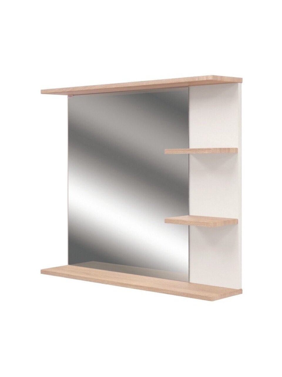 Представляем стильное и функциональное решение для вашего интерьера – зеркало с полками, полки справа, белый, дуб сонома, Doratiz, Гавайи 80. Это зеркало станет не только практичным элементом вашего пространства, но и добавит изысканности и современности. Идеально подходит для тех, кто ценит удобство и стиль в каждой детали.