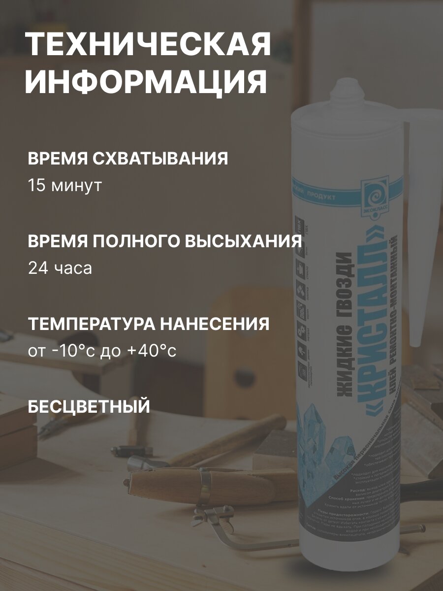 Вы можете приобрести «Жидкие гвозди Экокласс, Кристалл, 300 мл, ремонтно-монтажные, бесцветные» и другие товары в нашем интернет-магазине в Орле по низким ценам и с бесплатным самовывозом.