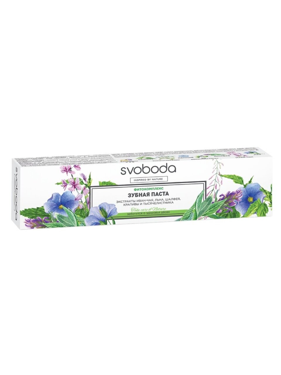 Зубная паста SVOBODA Фитокомплекс – это универсальное средство защиты зубов и десен. Паста удаляет налет и загрязнения, освежает дыхание.